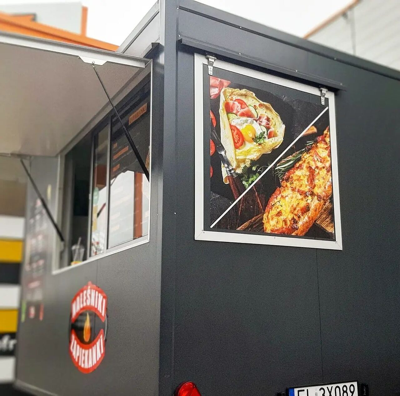 Jako, że naleśnikarnia to biznes całoroczny specjalnie na życzenie naszego Klienta wstawiliśmy do przyczepy zamykane okno, tak by zapewnić najwyższy komfort pracy Panu Andrzejowi również w sezonie zimowym.